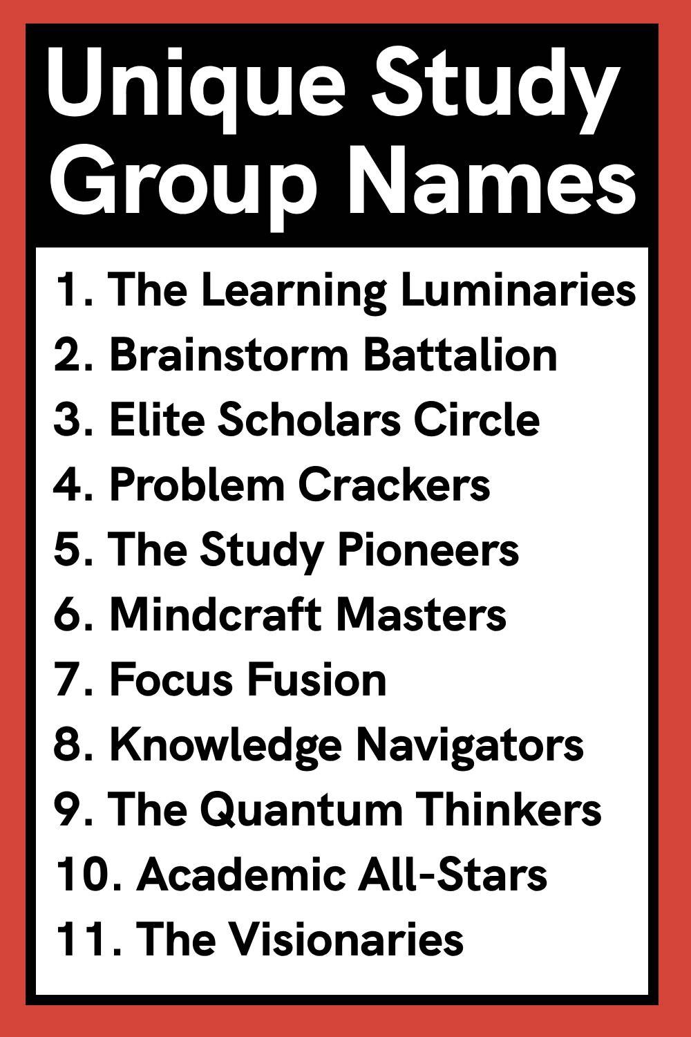 Choosing the right name for your study group can greatly impact its energy and focus. For boys, in particular, having a fun, unique, and motivating group name creates a sense of camaraderie and purpose. Names like “Brainy Bandits” or “Scholarly Samurai” not only add character but also help inspire members to stay committed to their goals. Whether you’re a group of university students preparing for finals, medical students tackling complex concepts, or a crew connecting over WhatsApp, a catchy identity can encourage teamwork and make studying more enjoyable.